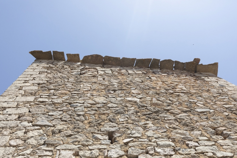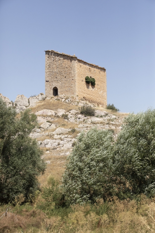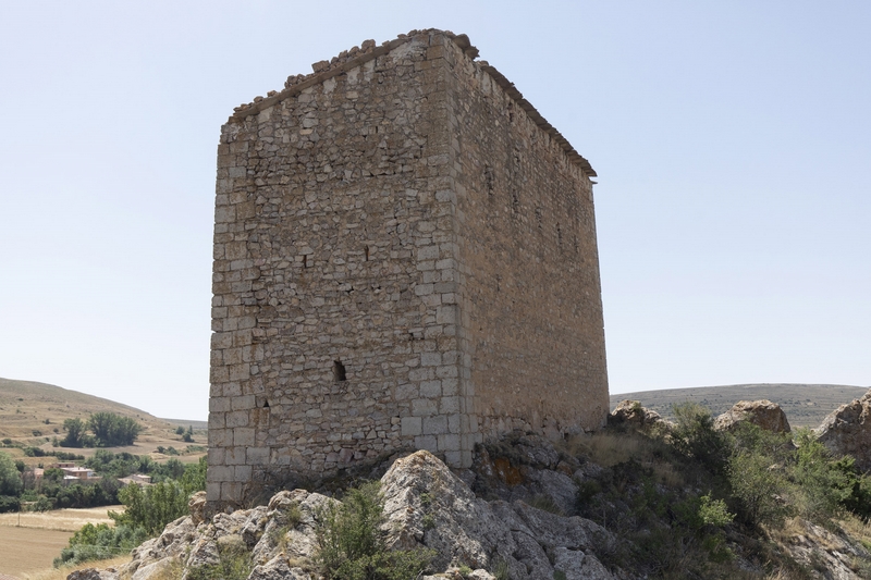 Esta torre se encuentra a las afueras de la población sobre una roca, arrancando directamente de esta.