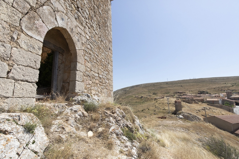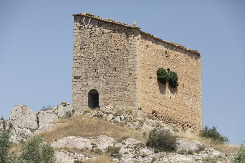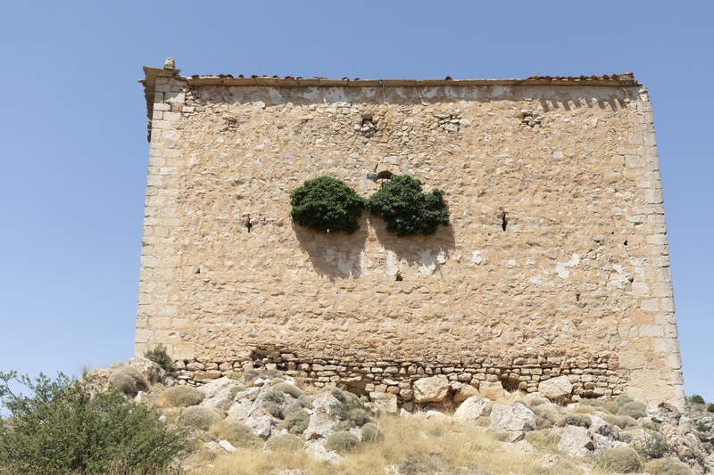 En sus muros se abren saeteras y en el lado mayor una ventana con arco de medio punto algo deteriorada; la puerta de ingreso en arco ligeramente apuntado se sitúa en uno de los lados menores, el opuesto a la población.