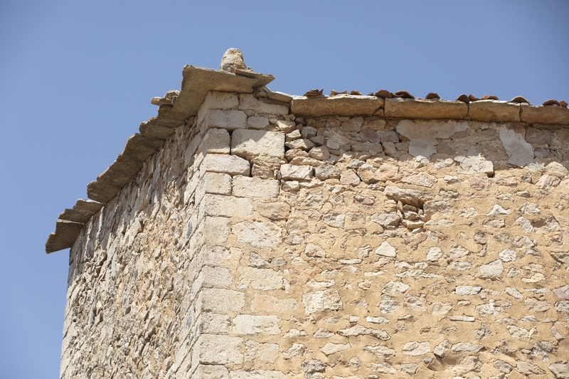 Toda la torre es de mampostería con sillares en las esquinas.