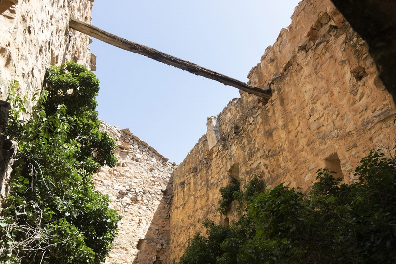 Interiormente se organizaba en tres plantas por los mechinales que aparecen en las paredes pues todos los pisos han desaparecido.